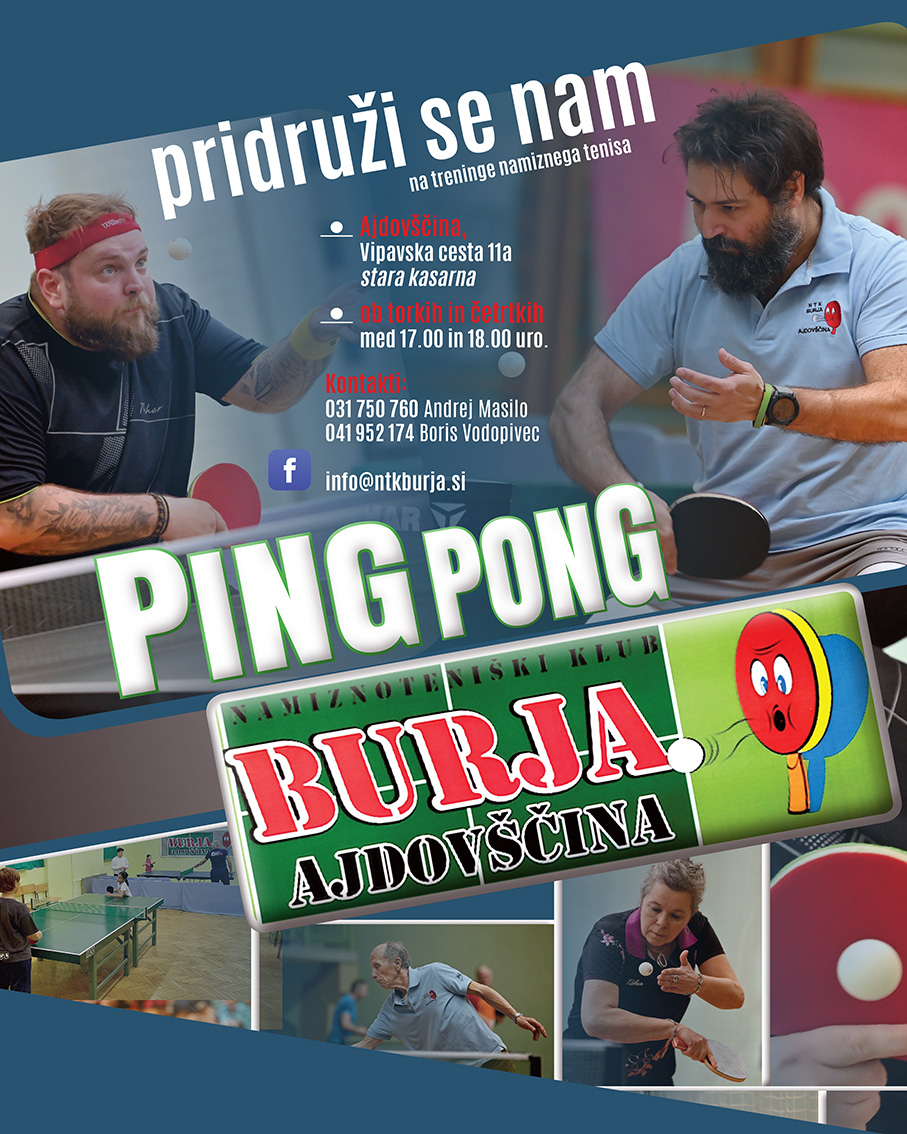 Vse ljubitelje namiznega tenisa vabimo, da si turnir ogledate ali na njem tekmujete. Prijave sprejemamo na e-poštnem naslovu info@ntkburja.si.
